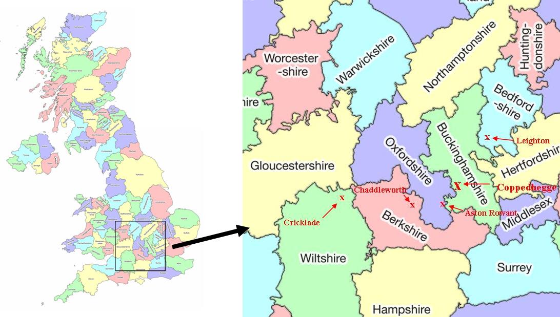The area surrounding Coppedhegge forest showing nearby clusters of Copages